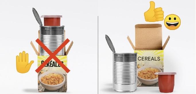 When you nest packaging before placing it in the yellow bin, you prevent it from being separated by material at the sorting center. Indeed, an aluminum can hidden inside a cardboard box may not be recognized by the sorting equipment. Similarly, it is important to separate the components of the same package before placing them in the bin (for example, for a packet of biscuits, separate the cardboard box and the plastic tray). If our packaging isn't separated, it's misidentified and won't be sent to its respective recycling stream. Higher-quality recyclable materials are more likely to be transformed into new, high-quality products.